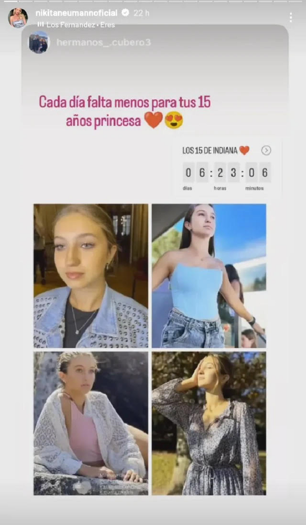 A días de que Indiana Cubero cumpla los 15, Nicole Neumann se acercó a ella a través de un posteo de Instagram que rezaba: “Cada día falta menos para tus 15 años, princesa”, con emojis de carita enamorada.
