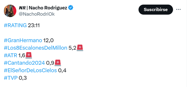 Rating minuto a minuto de Gran Hermano del lunes 23/12