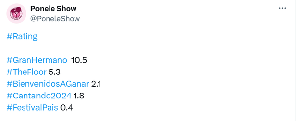 Los números de este lunes arrancaron mejor que los del domingo, midiendo 10.5 puntos de rating pero luego de eso no pudo levantar y se mantuvo en ese margen.