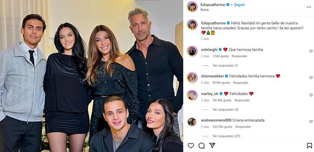 A seis meses de su casamiento, Paulo Dybala y Oriana Sabatini se encuentran atravesando rumores sobre un posible embarazo, a raíz de algunas fotos que Catherine Fulop -madre de la artista- compartió en sus redes sociales durante las celebraciones de Nochebuena y Navidad.