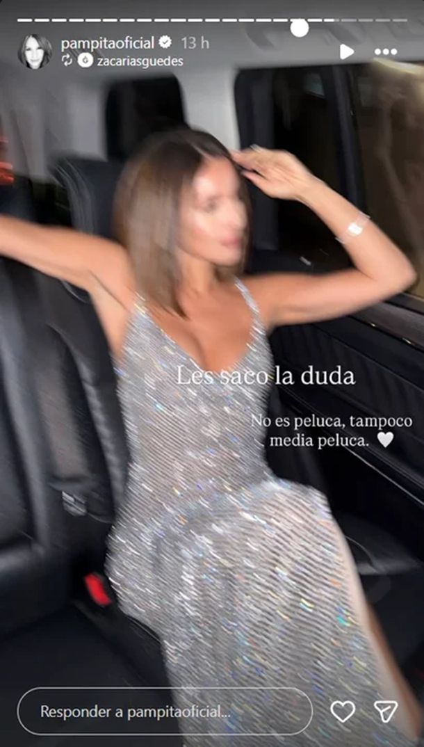 Pese al revuelo, el cambio no fue definitivo. Lejos de haberse sometido a un corte drástico, Pampita fue parte de una impecable producción de estilismo a cargo de su peluquero de confianza, Zacarías Guedes, quien salió a despejar dudas a través de las redes sociales. “Les saco la duda. No es peluca, tampoco media peluca”, aclaró el reconocido estilista en una historia de Instagram que luego la propia modelo compartió.