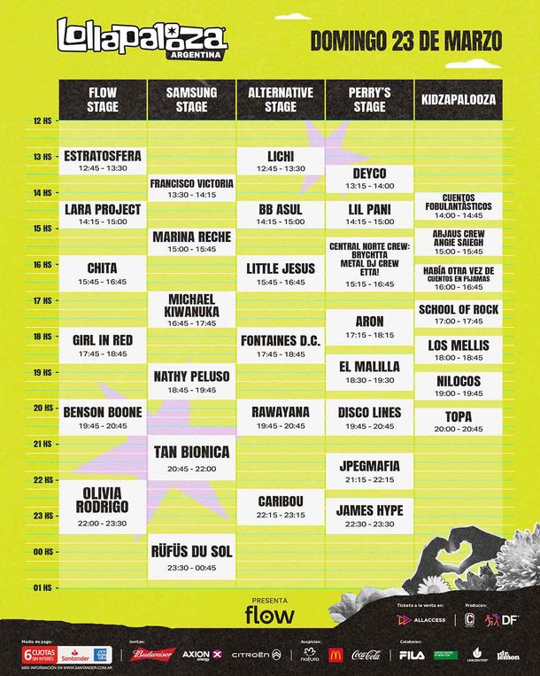 Para agendar: todos los horarios del Lollapalooza Argentina 2025