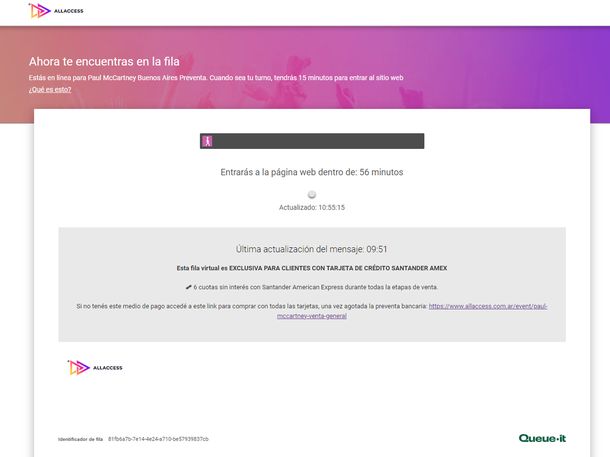 - Venta general: comenzará inmediatamente después de finalizada la preventa. Se podrá realizar con todos los medios de pago y los clientes de Santander American Express podrán adquirir las entradas en hasta 6 cuotas sin interés durante todas las etapas de venta.