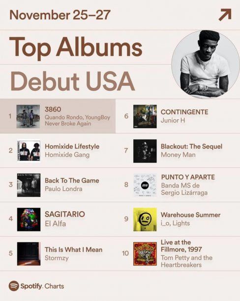 Paulo Londra ubicó a su flamante segundo disco "Back to the game" como el mejor lanzamiento argentino en Estados Unidos al alcanzar el tercer puesto de acuerdo a reportes de Spotify.