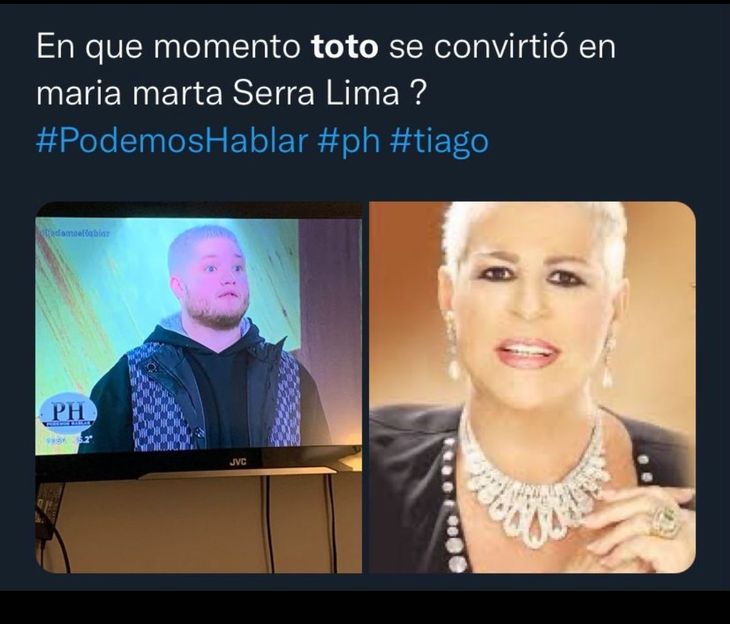 "¿En qué momento Toto se convirtió en María Marta Serra Lima?", postearon en Twitter. Le llegó seguramente por alguna aplicación de mensajería y la posteó.