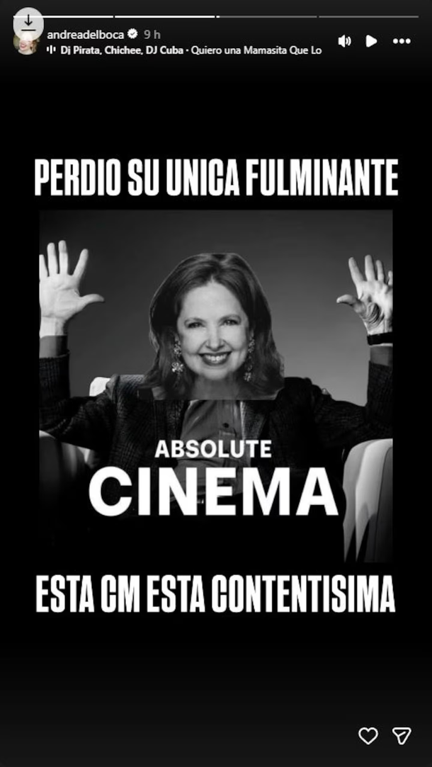 Desde sus redes sociales, la actriz decidió sumarse al momento con una publicación que no tardó en viralizarse: “Cine. La fulminante no se puede revelar. Perdió su única fulminante. Esta CM está contentísima”, escribió, dejando en claro su postura.
