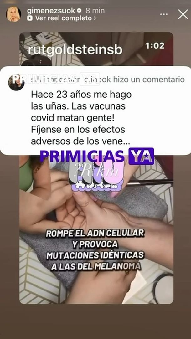 El posteo en cuestión incluía un video de circulación ajena que advertía sobre presuntos riesgos para la salud asociados al uso de lámparas de luz ultravioleta en tratamientos de uñas en gel, una práctica estética cada vez más difundida. Sin embargo, el material derivaba en un mensaje con un fuerte sesgo antivacunas relacionado con el Covid, lo que provocó sorpresa y debate entre los usuarios.