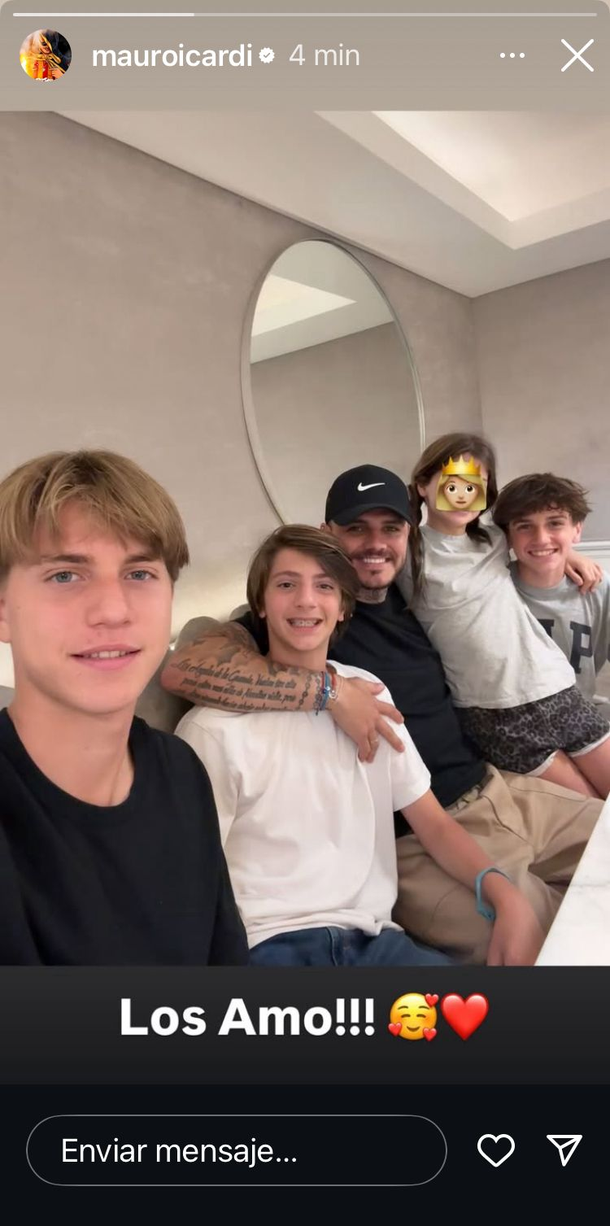 Luego de que se conociera la resolución por la cual podrá volver a ver a sus hijas, el jugador del Galatasaray de Turquía no dudó en mojarle la oreja a su expareja y madre de sus hijas Francesca e Isabella, con una inesperada foto: Icardi subió una historia con una foto junto a los tres hijos varones que Wanda tuvo con Maxi López y que el actual novio de la China Suárez supo criar.
