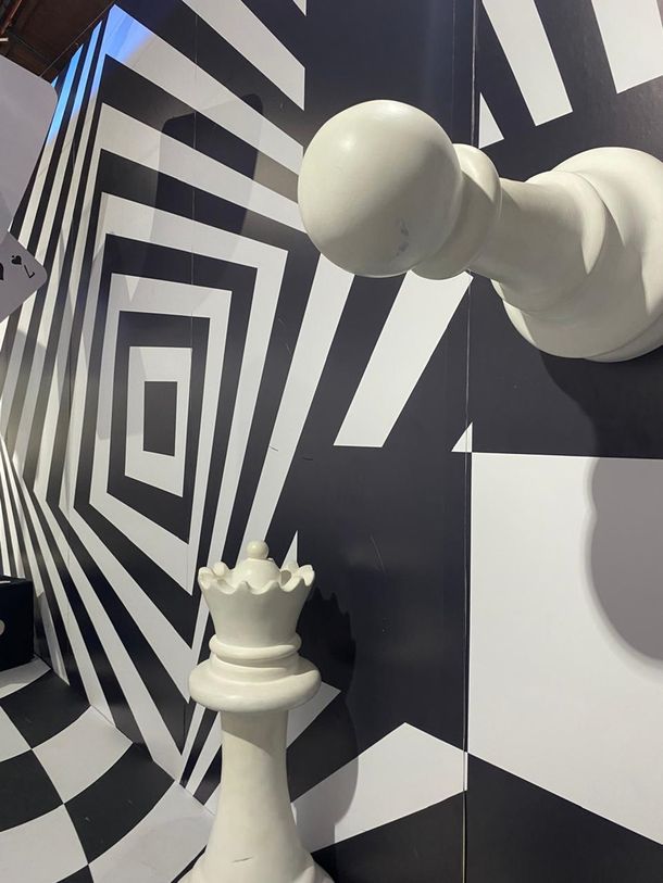Si hay un mundo que te vuela la cabeza al ingresar es el que simula un juego de ajedrez con sus piezas en grande, como también dados, y unos naipes que cuelgan del techo, y el diseño de su pared te puede hacer tener una de las fotos más cancheras de este último tiempo. Sobre todo si vas vestido de blanco o de negro.