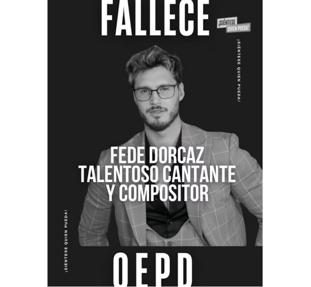 "Con profundo dolor despedimos a Fede Dorcaz. Cantante, compositor, modelo y artista, Fede nos dejó demasiado pronto, pero su talento, carisma y pasión por el arte vivirán para siempre en nuestros recuerdos y en la música que nos regaló".