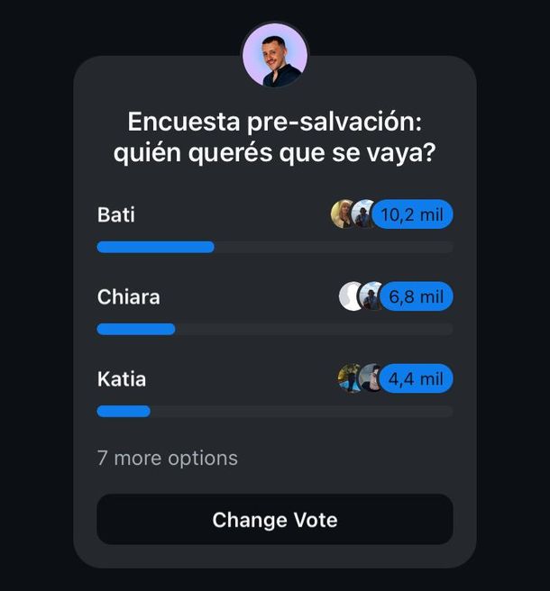 En tanto, en Instagram, la tendencia coincidió con la red social de Elon Musk: el participante cosechó más de 10.000 votos negativos, mientras que Chiara Mancuso le siguió con más de 6.800 votos.
