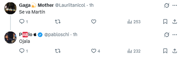 A esto, un seguidor le comentó: "Se va Martín", y el tuitero no dudó en deslizar un "ojalá", dejando en claro -una vez más- su postura "anti-planta" para el juego.