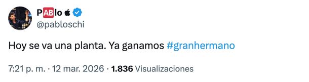 "Hoy se va una planta. Ya ganamos", fue el anticipo de Pabloschi en horas de la tarde, para empezar a generar expectativas y misterios entre sus seguidores.