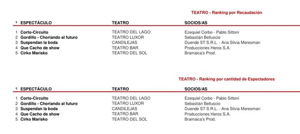 Detrás del fenómeno que encabeza Pedro Alfonso, el ranking de AADET muestra una cartelera fuerte y variada, con humor, música y espectáculos familiares entre los más elegidos por el público: