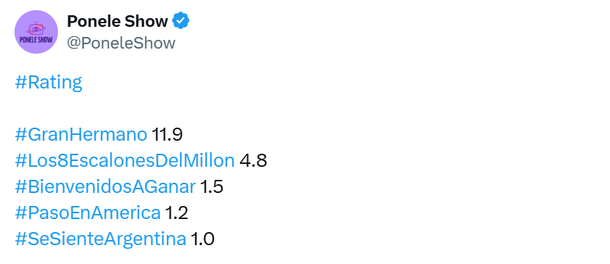 Lo más preocupante es que el momento de más tensión de esta gala especial del miércoles, con la eliminación extra, Gran Hermano no pudo llegar a los 12 puntos de rating, midiendo 11,9.