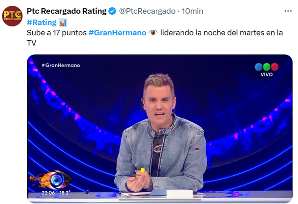 El rating de Gran Hermano, en su regreso a la televisión argentina, tuvo números sorprendentes, acercándose a los 20 puntos, algo que en los últimos tiempos solo estuvo reservado para la Selección o para los partidos de River y de Boca en la pantalla de Telefe.