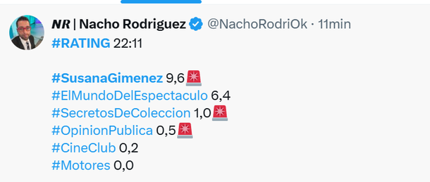De todos modos, ese pico de 10.2 puntos de rating duró poco porque la parejita de streamers se despidió de la nota con Susana Giménez por debajo de los dos dígitos.