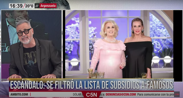 Jorge Rial reveló en su programa Argenzuela, por C5N, quiénes son los argentinos que reciben subsidios de parte del Estado para pagar la luz. Buen rating.