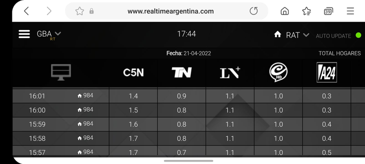 Rating de Robertito del jueves 21 de abril
