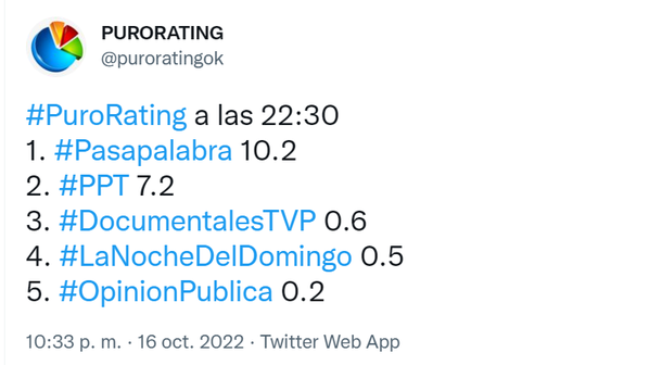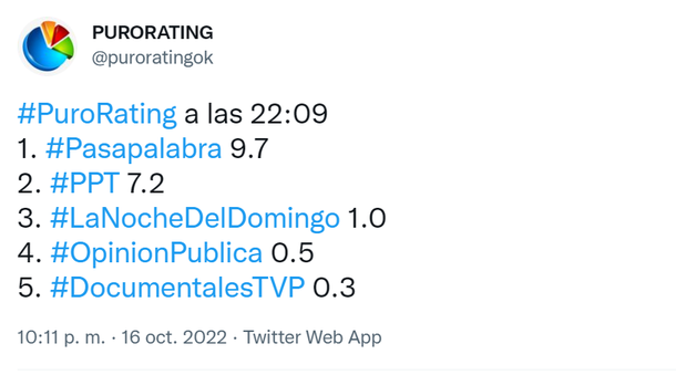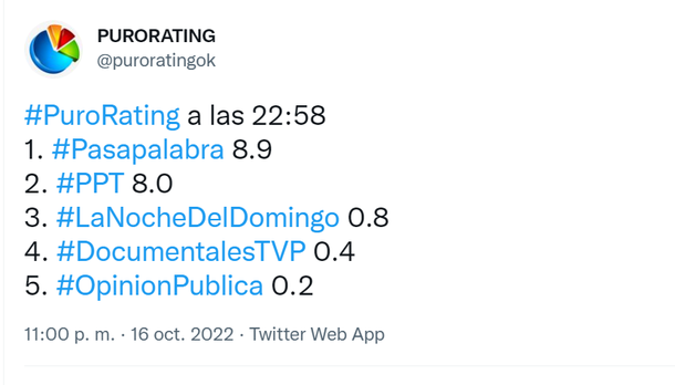 Llegando a las 22.30 Pasapalabra le sacó 3 puntos a Periodismo Para todos.