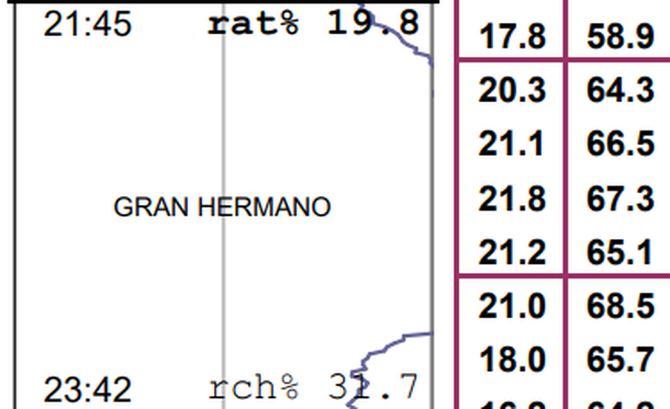 Gran Hermano es un tanque imparable: su rating no baja y cuando no promedia 20 puntos está a solo décimas de esa cifra, que es digna de otros tiempo y no de los actuales.