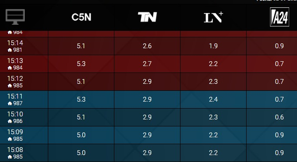 En el segmento de noticias, Argenzuela por momentos duplicó a TN y triplicó al canal de Mauricio Macri, el del diario La Nación.