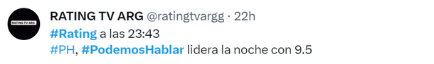 En su regreso a la televisión argentina, el sábado pasado, PH Podemos Hablar dominó el rating de principio a fin, con picos impresionante, superando los 12 puntos.