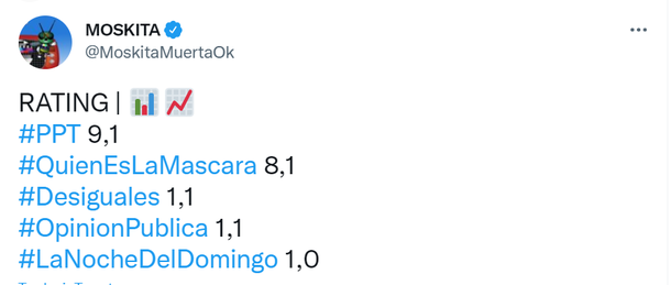 Sin embargo, con la última tanda de Periodismo Para Todos es muy larga, se recuperó Quién es la máscara, que pudo cerrar la competencia contra Lanata estando al frente en el minuto a minuto del rating.