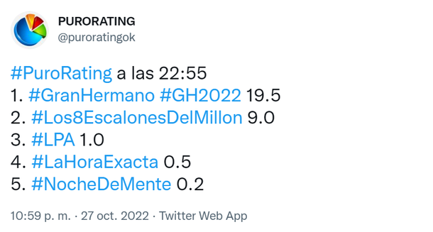 En tanto, Los escalones de Guido pudieron salir de los 7 puntos pero este jueves no logró llegar en el minuto a minuto a los dos dígitos.