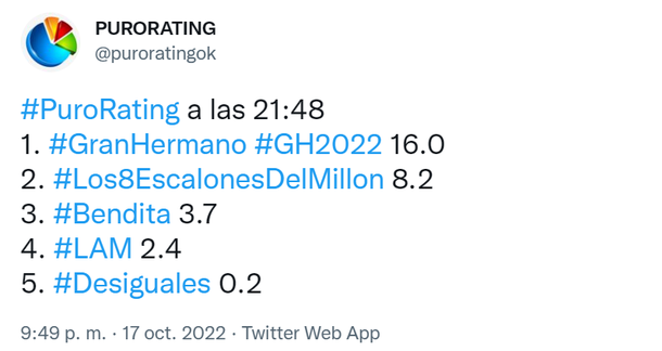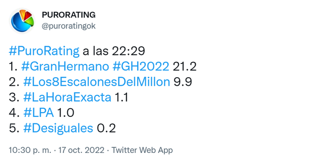 Gran Hermano comienza este lunes 17 de octubre de 2022 en la pantalla de Telefe y el rating comienzan a hacerse sentir en la competencia que se viene.