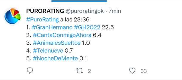 Luego llegó el turno de la competencia contra el programa de Tinelli y ahí llegó el pico de Gran Hermano, que destrozó en el rating a Canta conmigo ahora, midiendo 23 puntos.