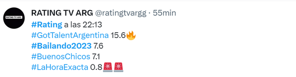 El Bailando 2023 de Marcelo Tinelli sigue con los números del rating más altos de los previstos, estando cerca de los dos dígitos y en su franja horaria perdiendo el martes solo con Got Talent de Telefe.