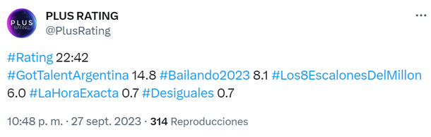 Finalmente el Bailando 2023 de este martes 26 de septiembre promedió casi 9 puntos de rating (8.9), siendo el cuarto programa más visto del día, a nada del noticiero de Telefe y Traicionada.