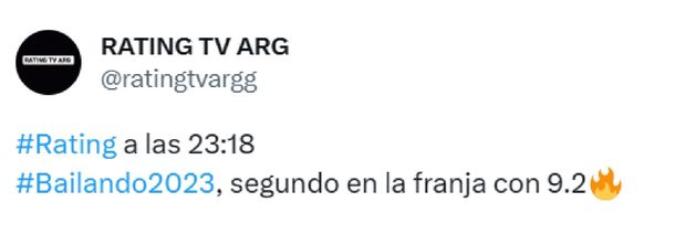 Antes de finalizar la jornada, el Bailando había escalado 0.8 puntos, ubicándose segundo en la franja con 9.2, lo cual hace que Marcelo Tinelli cierre la semana aliviado.