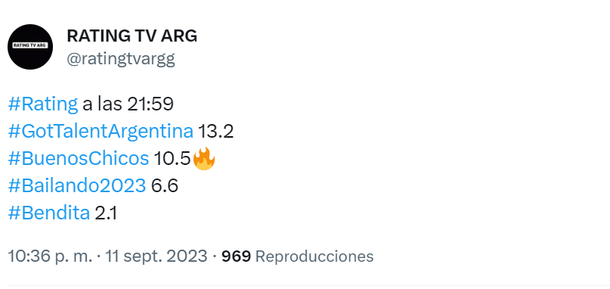 Sin embargo, con el correr de los minutos y cuando terminó Buenos Chicos, el Bailando 2023 se ubicó en el segundo lugar.