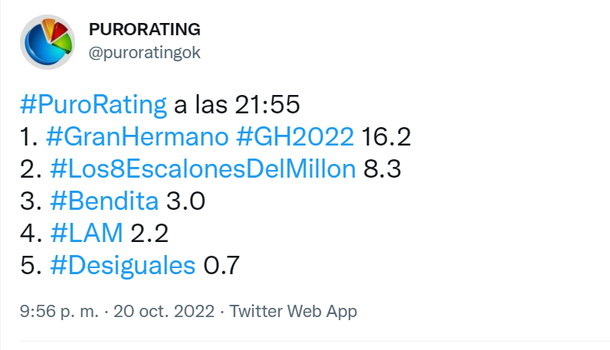Y este jueves 20 de octubrelos fanáticos del reality más fuerte de la televisión argentina siguieron de parabienes.