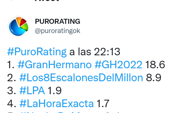 Rating del jueves de Gran Hermano