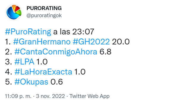 Cuando llegaron las 23 horas y comenzó el programa de Marcelo Tinelli casi inmediatamente Gran Hermano llegó a los 20 puntos de rating. Una verdadera locura por la hora.