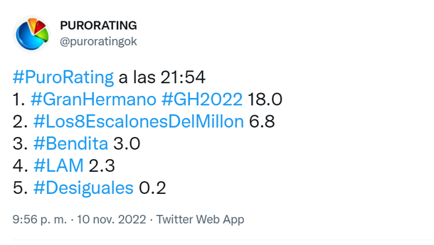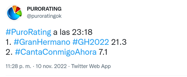 Este jueves 10 de noviembre en Gran Hermano pasó de todo y el rating, como viene sucediendo, sigue explotando, quedando claro que el 31 de diciembre será marcado como lo más visto del año.