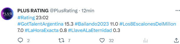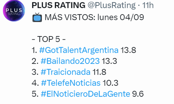 Los minutos finales fueron casi sin cambios, porque el Bailando 2023 mantuvo los 11 puntos, Got Talent Argentina bajó a 14 puntos y Guido se quedó en 7 puntos. Otra jornada exitosa para Tinelli.