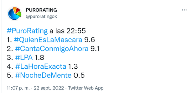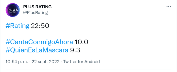 Y dos minutos, con números similares la pelea se mantiene igual pero al revés, con Canta conmigo ahora liderando en el rating.