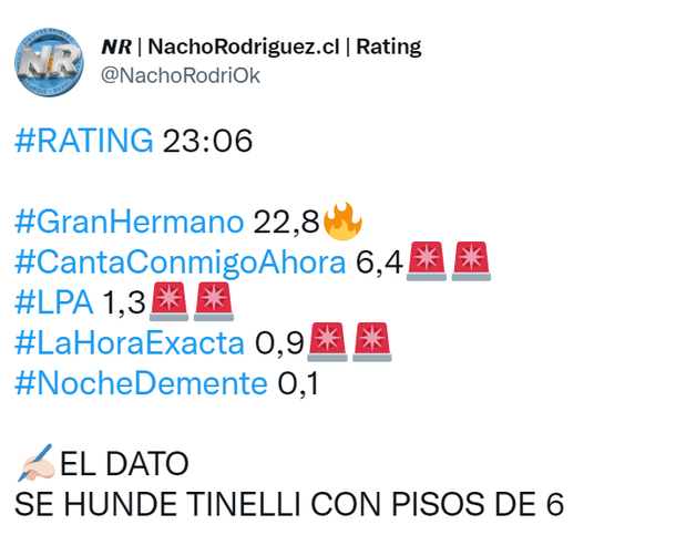 Como viene ocurriendo siempre, el peor castigo de Gran Hermano se lo lleva el Canta conmigo ahora de Tinelli, que comenzó después de las 23 con apenas 6 puntos de rating.