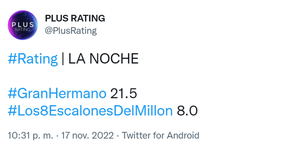 Rating del jueves 17 de noviembre