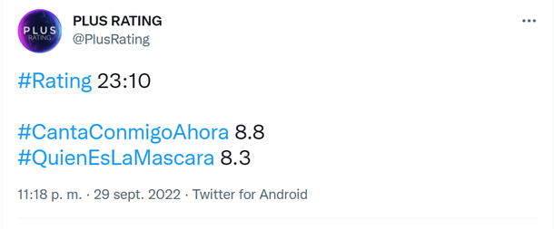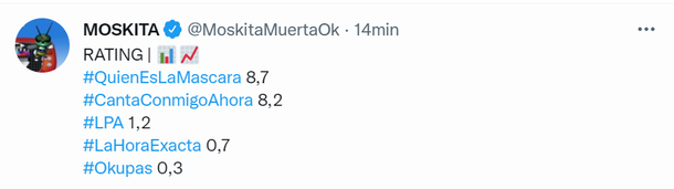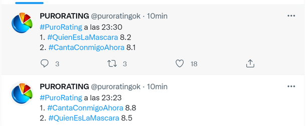 Diez minutos después, casi con los mismos números y la misma diferencia, pasó al frente Quién es la máscara, siempre con números muy bajos.