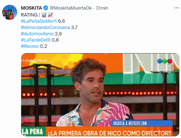 Otra vez el rating queda del lado de Telefe, con La Peña de Morfi, un programa en vivo de más de 5 horas, contra uno de menos de dos horas y grabado, como el de Juana.