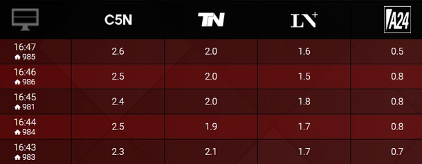 Y otra vez Argenzuela arrasó en el minuto a minuto del rating de este jueves 25 de agosto, superando por momentos a los canales de aire y ganando su segmento entre las señales de noticias.