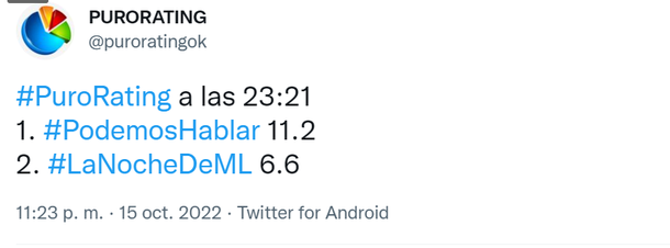 PH Podemos Hablar, el programa de Andy Kusnetzoff, volvió a competir con Mirtha Legrand, quién sin L-Gante y apostando otra vez por una mesa macrista perdió por paliza en el rating este sábado 15 de octubre de 2022.