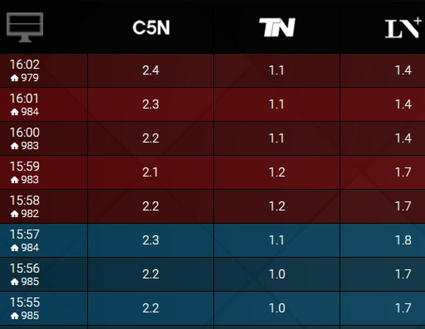 En otro gran programa, Jorge Rial otra ver lideró en su segmento contra los otros canales de noticias, duplicando por momentos en el rating al segundo, que por momentos era TN y en otros el canal de Mauricio Macri, el del diario La Nación.