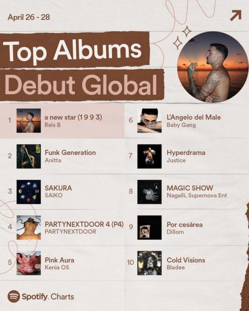 Rels B arrasa tanto a nivel discográfico como en sus shows. En esta ocasión, solo un día después de que su nuevo álbum, ’a new star (1 9 9 3)’, vea la luz, no ha sido distinto. El cantante hizo historia en la música española firmando el tercer mejor debut de un artista español a nivel mundial en Spotify.