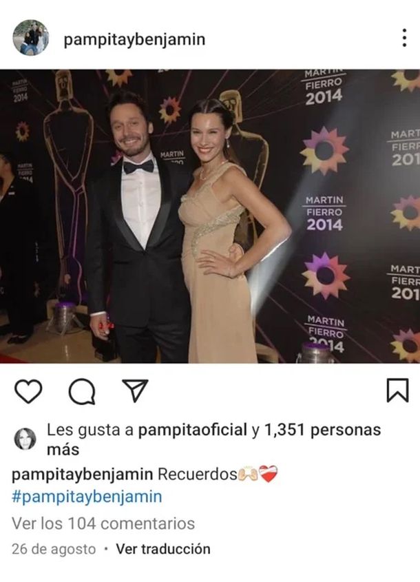 El like de Pampita a una vieja foto junto a Benjamín Vicuña